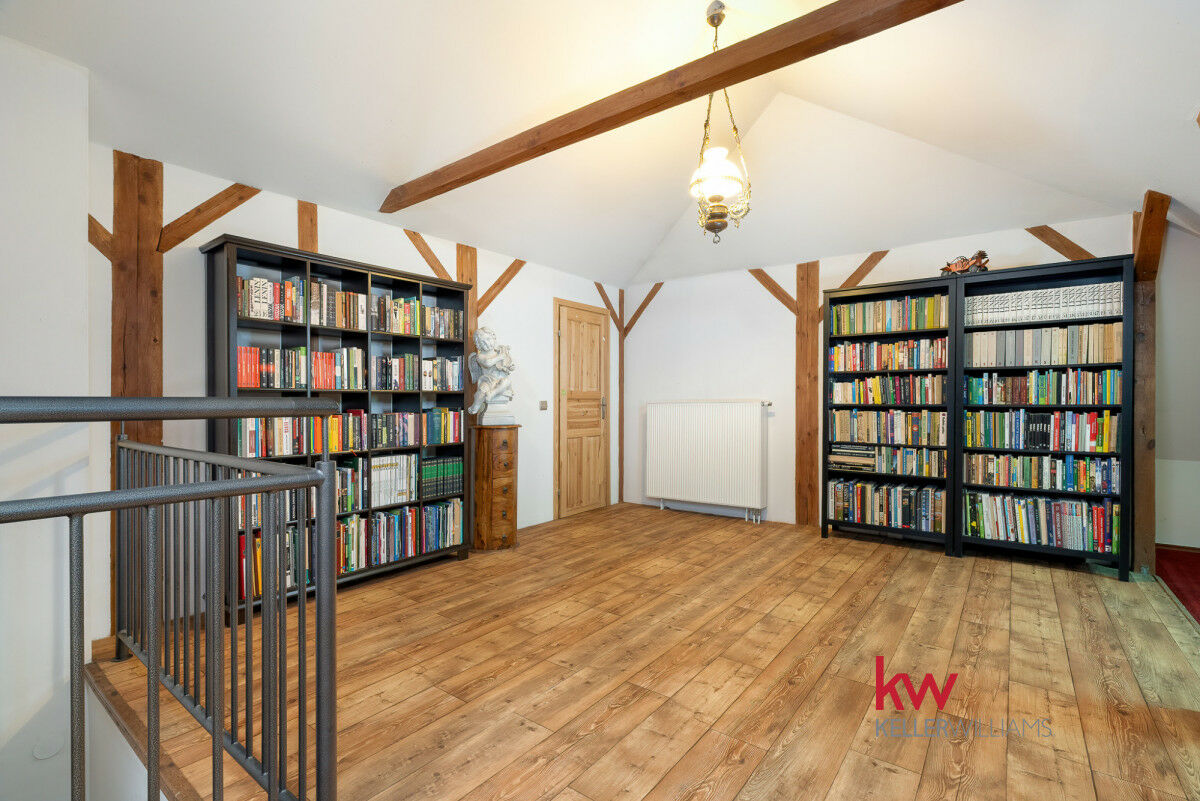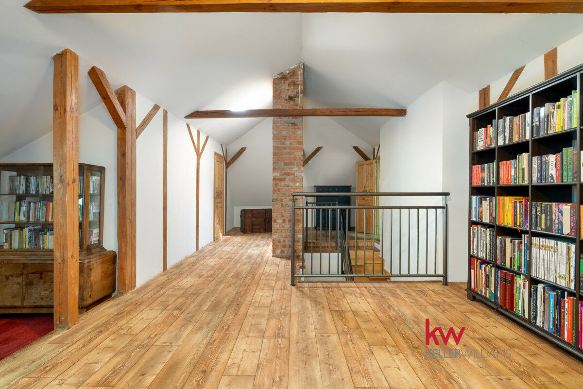 Dom mieszkalny jest klimatyczny i funkcjonalny, a jednocześnie stanowi doskonałą bazę do adaptacji według własnych potrzeb. Może zostać rozbudowany i przekształcony w nowoczesną rezydencję albo pozostać przytulnym domem rodzinnym.
